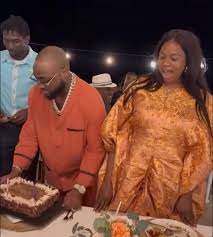 – Davido holding the birthday cake as joyful mother in law celebrating
