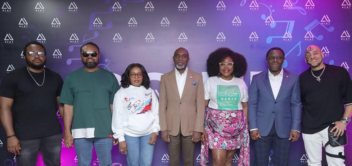L-R: Sounds of ALAT Judges, Alpha Ojini, Cobhams Asuquo, Head, Brand and Marketing Communications, Wema Bank, Mabel Adeteye; MD/CEO, Wema Bank, Moruf Oseni, Sounds of ALAT, Judge Omawuni Megbele, Executive Director, Retail and Digital Business Directorate, Wema Bank, Tunde Mabawonku and Sounds of ALAT, Judge DJ Sose at the unveiling of the Top 3 participants of the Sounds of ALAT competition, held at Wema Bank… []