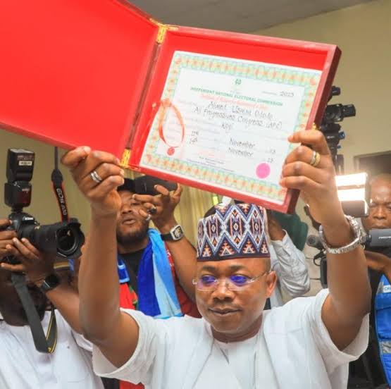 – Kogi Gov-elect, Usman Ododo displaying his Certificate of Return By Adeola Idris The Independent National Electoral Commission has presented certificates of return to the Governor-elect of Kogi State, Usman Ododo and his running mate in the election, Joel Salifu. The certificates of return were presented at the INEC headquarters in Lokoja, the state capital on Friday, amid jubilation by a mammoth crowd of supporters…. []
