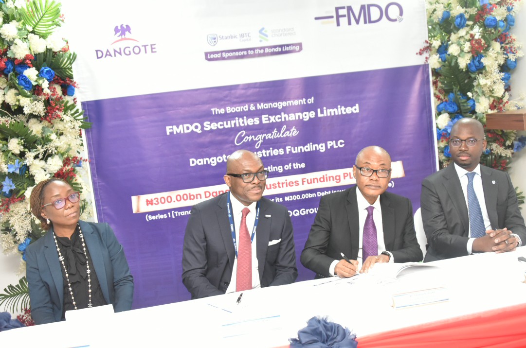 Dangote Industries Limited (DIL) has formally listed its N300 billion Series 1 and 2 bonds issued under the Dangote Industries Funding Plc during a grand listing ceremony at both the FMDQ and the Nigeria Exchange Limited (NGX) in Lagos.