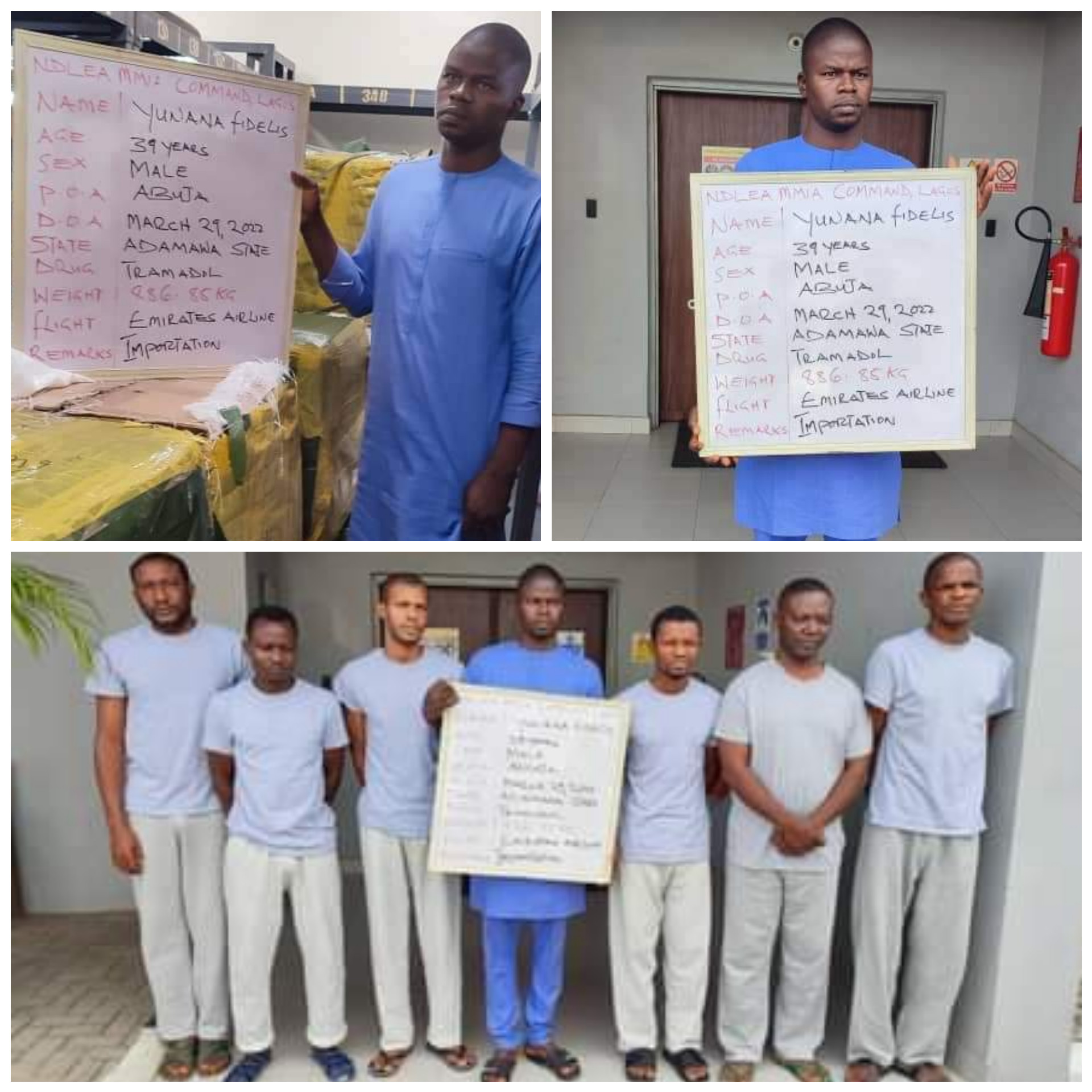 The National Drug Law Enforcement Agency, NDLEA, has arrested a fleeing drug kingpin, Yunana Fidelis, heading a syndicate operating at the Murtala Muhammed International Airport, MMIA, Ikeja Lagos and six other members of his gang.