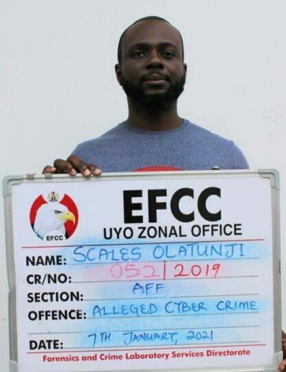Scales Olatunji who was earlier convicted for internet fraud and money laundering charges by a Federal High Court, sitting in Uyo, Akwa Ibom State has been sentenced to 235 years imprisonment by Calabar Division of the Court of Appeal which upheld his conviction.