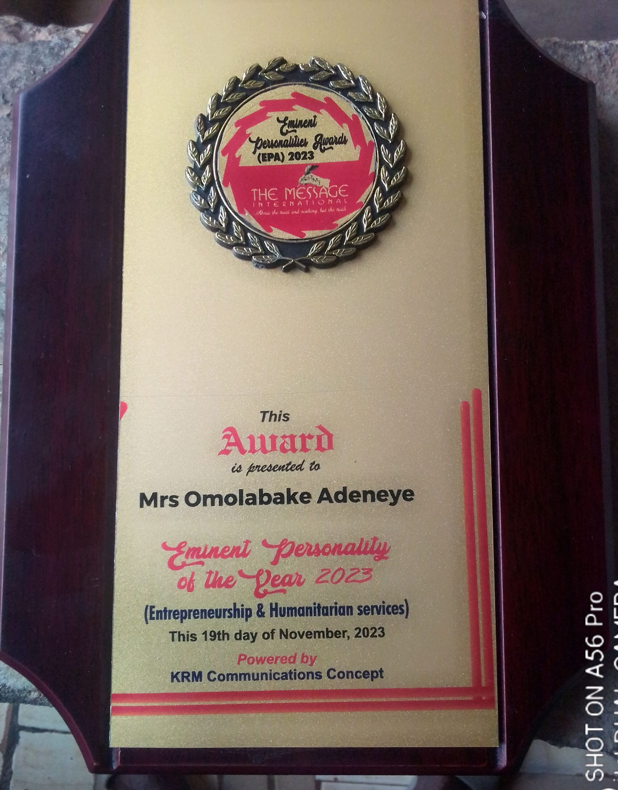 Speaking from her base in London, Labby Adeneye also thanked the organisers of Eminent Personality Award and the entire crew of Omogbolake Foundation.